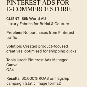 Silk World had a stunning product line — hand-beaded lace, couture fabrics, satin rolls that shimmered like liquid — but Pinterest wasn’t driving conversions.